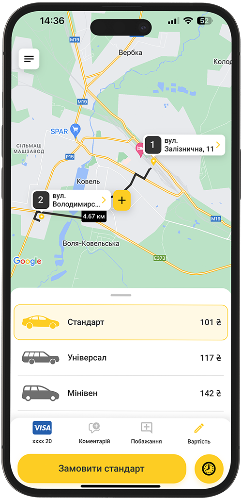 Ви можете скористатися послугами нашої служби таксі, завантаживши мобільний додаток на свій смартфон та замовити таксі онлайн, або ж просто зателефонувати нам та повідомити оператору своє місце перебування. Ми завжди піклуємося про Вас, тому під час поїздки в наших таксі Ви автоматично застраховані від нещасних випадків